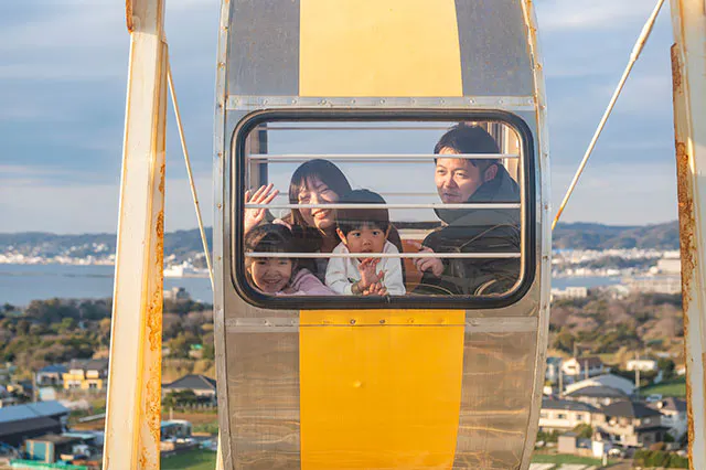 たっぷり遊んだ後の締めくくりは観覧車で。高さは約31mあり、天気が良い日には相模湾や富士山をきれいに見渡すことができます。