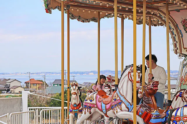 ちなみに「ソレイユの丘」のメリーゴーランドは、海を望む景観の良さも見逃せません。視界が抜けて空も大きく見えるので、まるで空を飛んでいるような清々しさ!