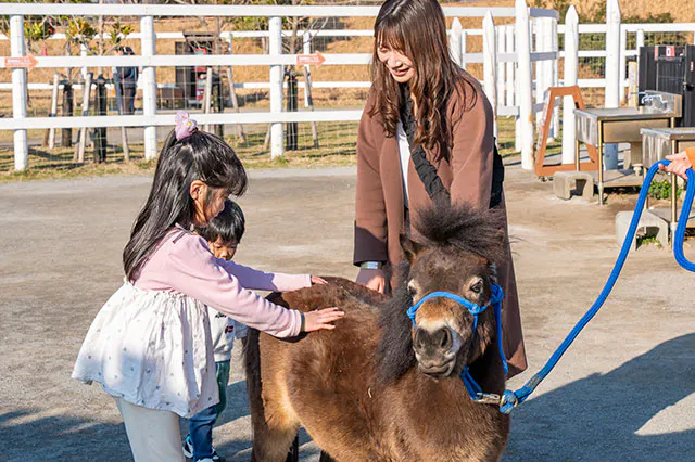 | 料金 | 【入場料】 800円/大人 (高校生以上) 400円/子供 (3歳~中学生) ※2歳以下は無料 【ポニー乗馬】 500円 ※3歳から小学4年生(体重40kg)までの子どもが対象です 【餌やり体験】 200円/1カプセル ・もこもこ広場(ひつじ、アルパカ) ・のんびり広場(カピバラ、カンガルー) ・ぴょんタッチ広場(うさぎ、マーラ) 200円/3つ ・ペンギンラグーン(ペンギン) |