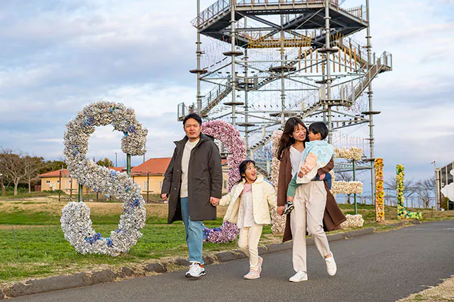 季節の花が彩る広大な花畑は、ソレイユの丘の代名詞。園内各所にかわいいモニュメントやフォトスポットがあり、カメラを向けるだけで家族の笑顔が「一生モノの最高の一枚」に仕上がります。