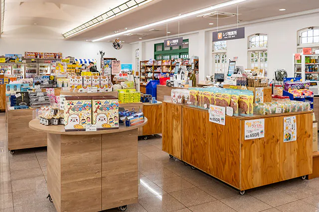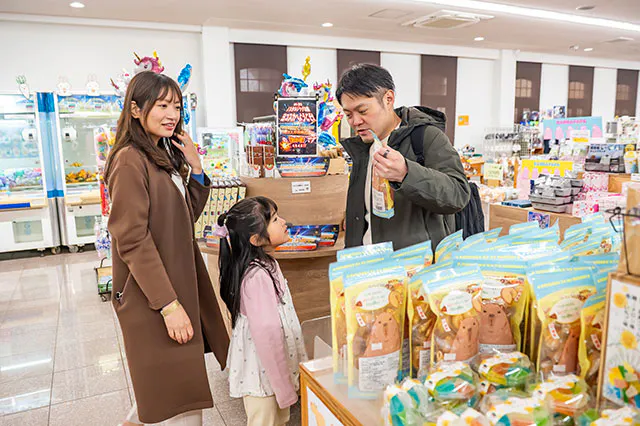 帰る前に、エントランス付近にある「ヨコスカスーベニアショップ」でショッピング。ソレイユの丘パッケージのお菓子やグッズのほか、地場の新鮮野菜や漁港直送の地場水産加工品などもあり、お土産選びが捗ります。