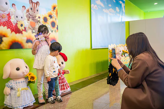 大きなシルバニアファミリーとの記念写真は、子どもにとっても忘れられない1枚になりそう!店内には、ほかにも映えるスポットがたくさんあるので要チェックです。