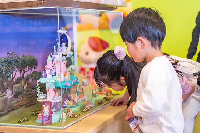 「こんな風に飾るといいね!」なんて、かわいいシルバニアファミリーの展示にすっかり夢中な子どもたち。親子で「どの子が好き?」とお気に入りを探す時間もまた、幸せのひとときです。