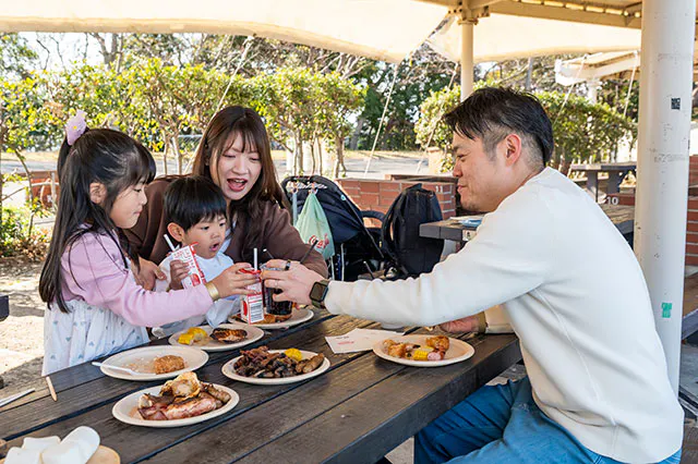 今回は天気が良かったので、BBQをチョイス。アトラクションに夢中になっている子どもをランチに誘うには、やっぱり特別感がある食事がいいですよね。「ソレイユの丘」では、食材の持ち込みもOKですが、事前準備もしていなかったので「手ぶらBBQ」にしました。
