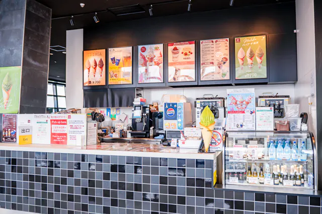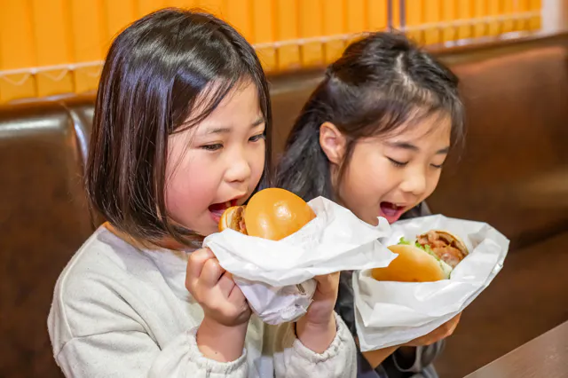 メインデッキの絶景やお買い物を楽しんだあとは、2Fのフードコートへ。座席数が多く、ハンバーガーや麺類など子どもも食べやすいメニューが充実しているため、家族で気兼ねなく食事や休憩を楽しめます。