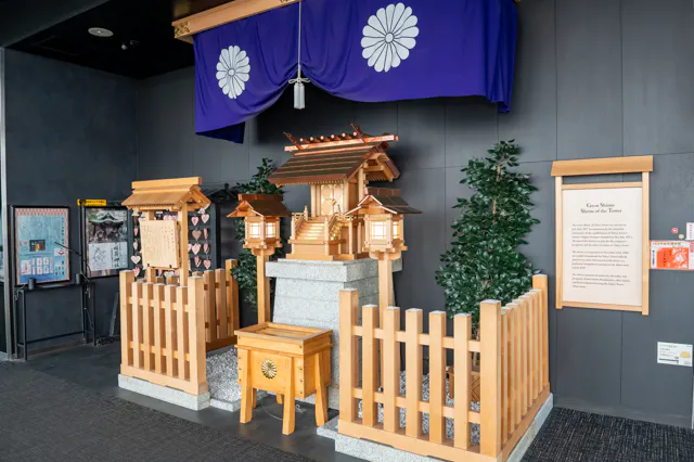階段を上がったメインデッキ2階には、東京23区内で一番高い場所にあると言われている神社「タワー大神宮」があります。伊勢神宮より御神霊をお招きした由緒ある神社です。