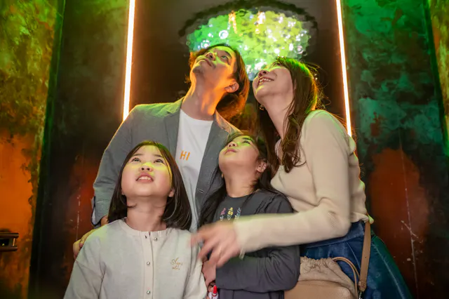 アソビューで購入した電子チケットをスタッフさんに見せて入場します。秘密の入口のようでワクワク。