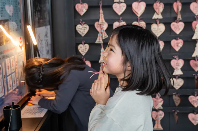 タワー大神宮では、御朱印をもらったり、絵馬をかけたりもできます。娘がハートの絵馬に何か書いていますが見せてくれませんでした。