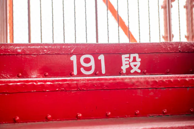 昇っていると、ときどき段数が書かれているので、「3分の1くらい昇ったね!」と励まし合いながら進みます。