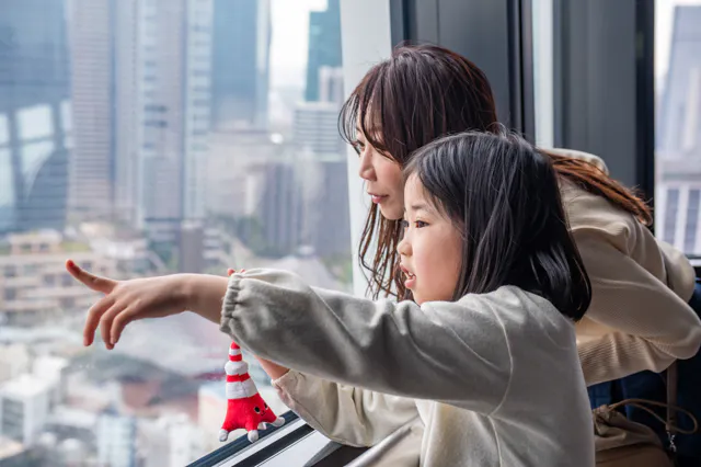 高さ150mの特等席。メインデッキで過ごした家族のひととき。