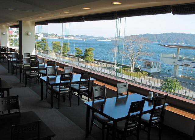 広々とした店内には大きな窓があり、そこから鳥羽湾が一望できます。晴れた日には濃いブルーをした海が、青い空と重なり絶景が見られるでしょう。