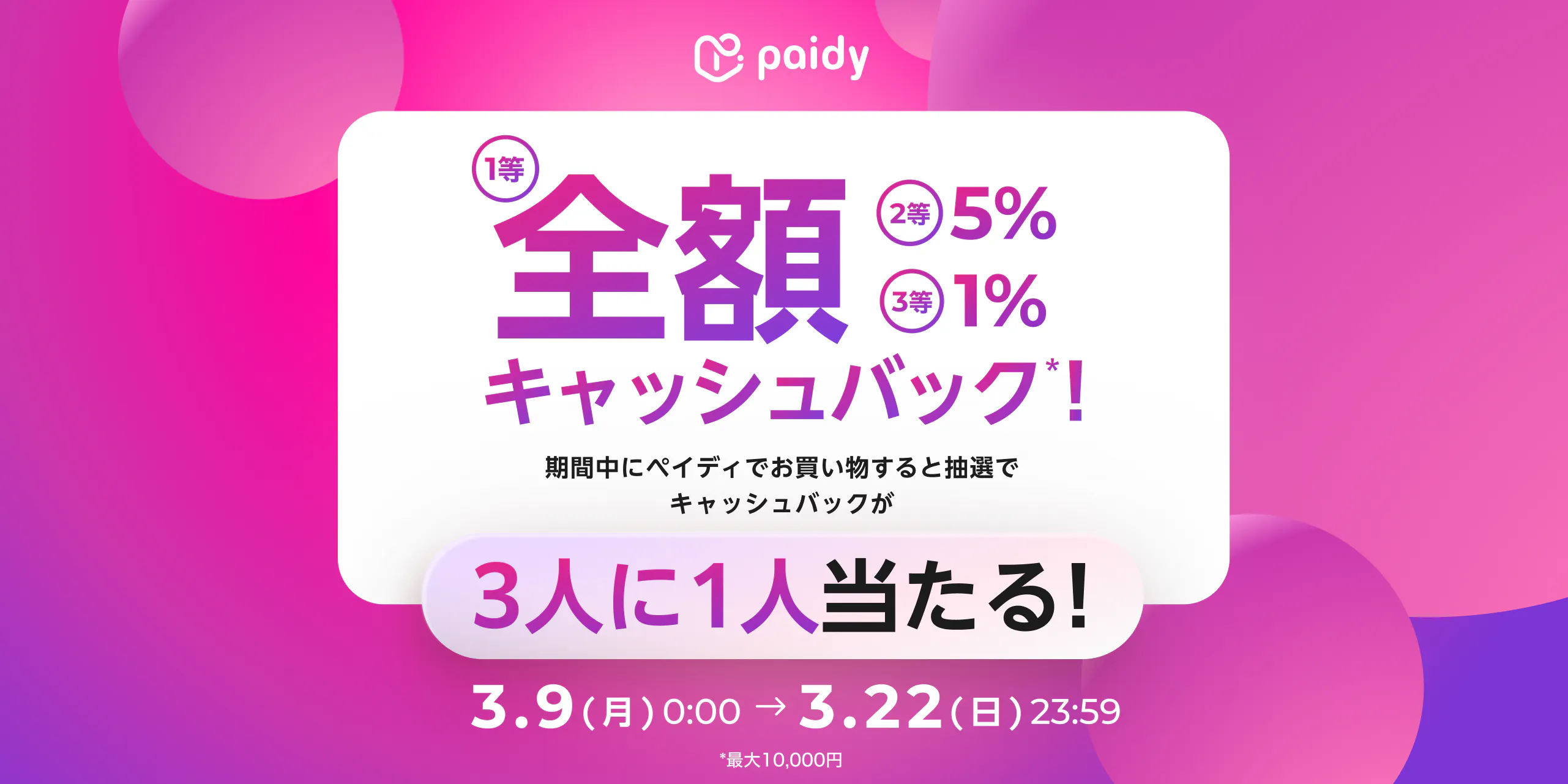 【最大全額キャッシュバック!】あと払いペイディでお得なキャンペーン実施中