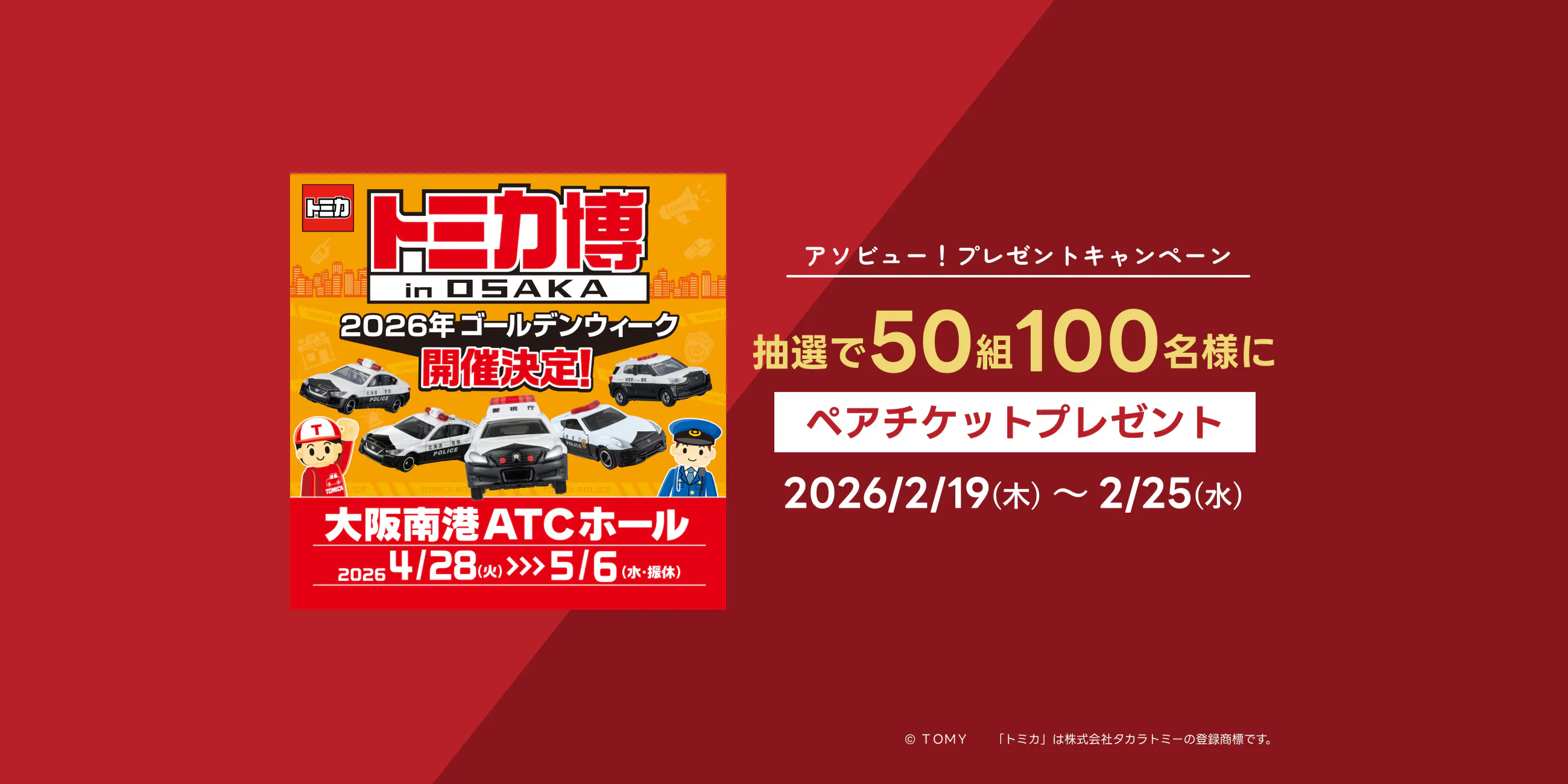 【50組100名様をご招待】GWはトミカで決まり!「トミカ博 in OSAKA」の大人・子どもペアチケットが抽選で当たる!限定キャンペーンを実施中