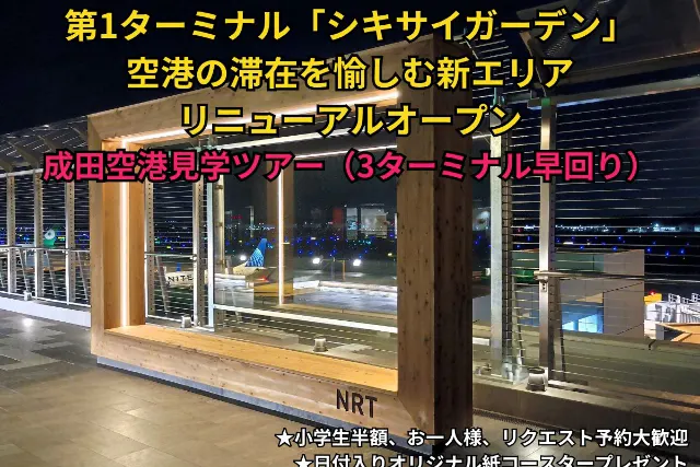 【千葉・成田・ツアー】成田空港見学ツアー(3ターミナル早回り)★25億円規模で1年かけて整備された新エリア「SHIKISHIKISAI GARDEN」を見てみよう! ガイドツアー 6歳からこの店舗のプラン(4件)をもっと見る -